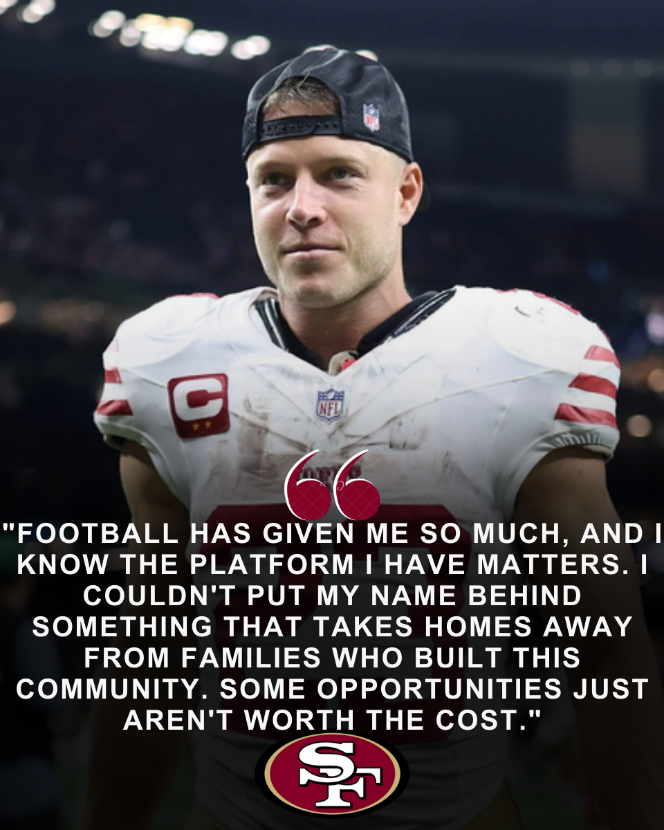 San Francisco 49ers running back Christian McCaffrey has reportedly declined a $5 million endorsement offer tied to a luxury real estate project connected to ongoing gentrification efforts in the Bay Area.